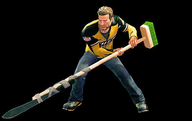 | Effect | A medium-range melee weapon that works a lot like a poleaxe, letting Chuck slice zombies with the machete taped to the end of the broom. | |||