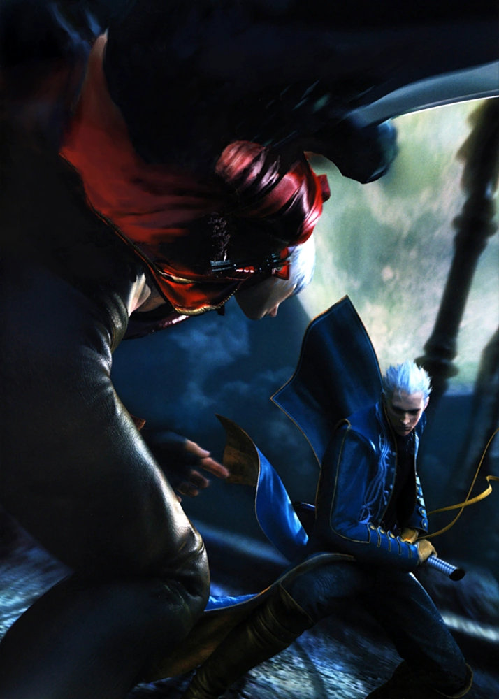 As during the original Devil May Cry Vergil was said to have been killed by demons early and had his soul under the control of Mundus, Bingo Morihashi wanted to create an alternate universe in which Vergil was alive. However, Hideki Kamiya gave Morihashi the freedom to retcon this and make Vergil into a living teenager for the events of Devil May Cry 3.[6]