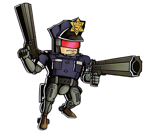 Gadget-Cop is a good cop gone bad when his hero-ness is taken from him. The ammunition from his double 9's must be used against him in order for him to be defeated.