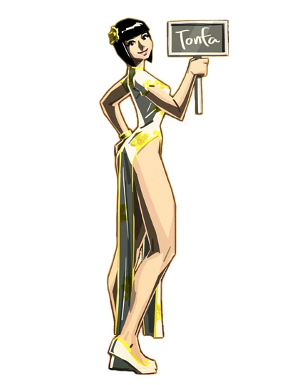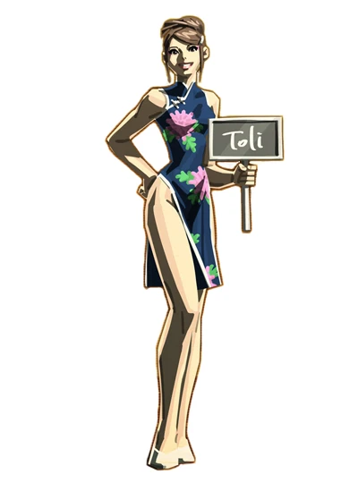 Toli (冬麗 Tonrī?) is a Chinese girl who wears a dark blue Chinese dress. Her bangs are parted to the side of her face and she's the middle child of the 3 sisters and is also a blogging obsessed student. Her favorite things to blog about is where she goes and what she eats. Toli is good friends with Anna and the two girls often exchange information. She takes things at her own pace and has a cheerful and bright personality. She easily becomes friends with others.