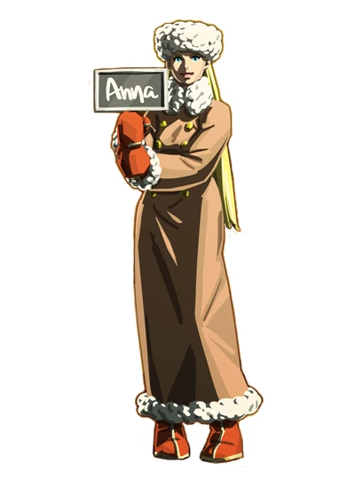 Anna (アンナ?) is a blond Russian girl who wears a long coat and an ushanka. She wants to become a mathematician as she is studying geometry and astrophysics. Although she doesn't like drinking coffee, Her favorite hobby is touring cafes. She experienced her first travel overseas when she was invited to Japan by Karin.