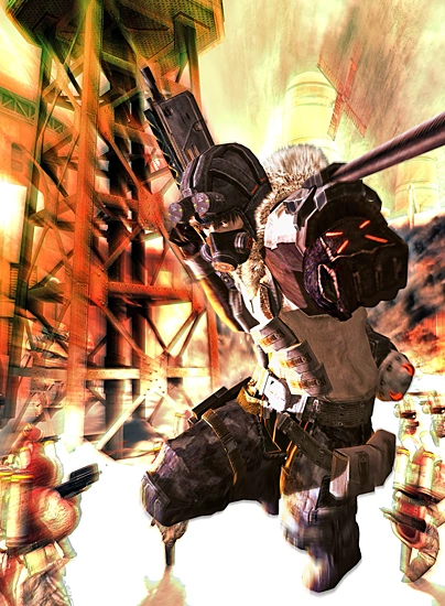 There are multiple Vital Suits available for use, the GTT-01, the GTF-11, the GTB-22, the GTF-13M, the PTX-40A, the GAB-25M, the GAN-34, the PTX-140, and the PTX-40A/L-P-9999 (In approximate order). Also, when on foot, Wayne has the ability to remove heavy weaponry from these vital suits for upgraded firepower. For battlefield mobility, some of these vital suits can "Transform" into a faster, more agile form. For instance, one light-weight vital suit can transform into a Snowmobile-type transport with a chain-gun attached to it. As for weapons, there are some of the typical science fiction weapons such as sub-light speed lasers and slow-moving plasma bolt guns. The main weapon in the game is the previously mentioned machine gun, which somewhat resembles a FAMAS. It is quite effective at both medium and short ranges when against humans and small to medium-sized akrid, but is of limited use against boss akrid and VSs. Wayne can carry a maximum of two weapons at once. He, and multiplayer characters, are capable of using a grappling-hook type tool to gain vantage points.