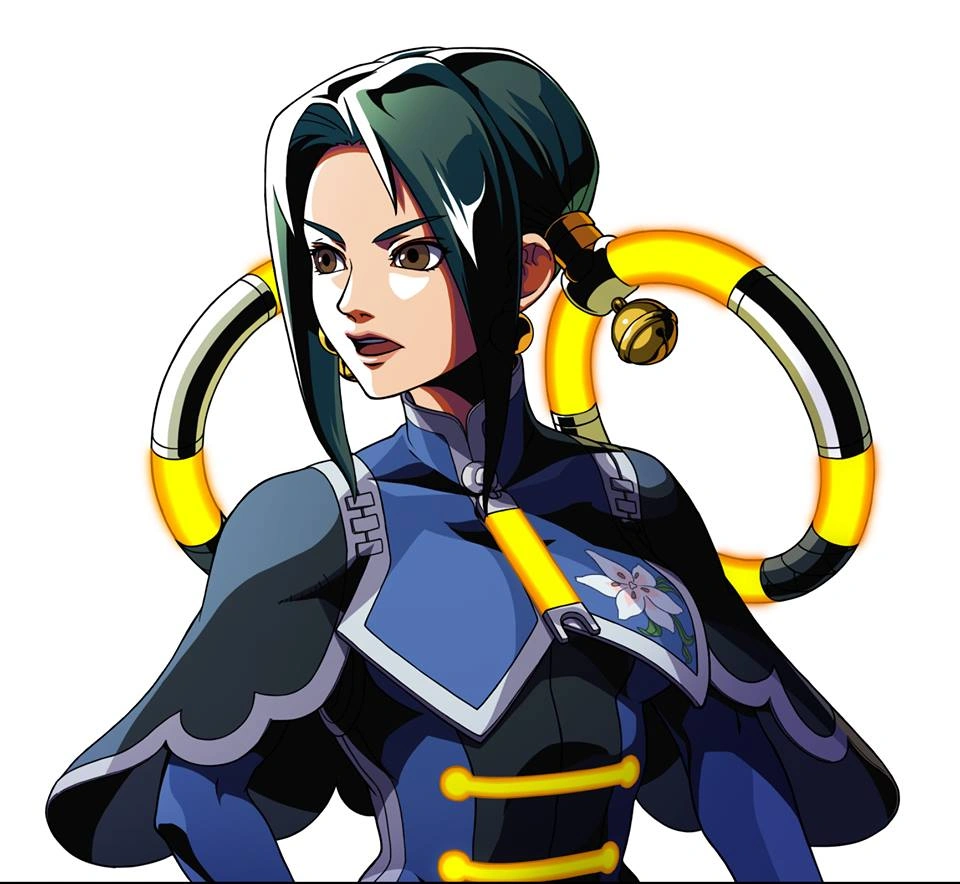 Nang Pooh is the youngest sister[1] in the bounty hunter and assassin trio known as the "Four Winds". She acts as the team's "refreshener",[1] recognized from her sisters by her blue clothes and unique hairstyle, two pigtails with large circular decorations. The most dilligent and driven member of the team, she's an expert of Soujutsu ("spear arts") and wields a crescent spear known as "Houtengeki" (方天戟 fāng tiān jǐ, lit. Heaven Percing Halberd) to fight at mid range.