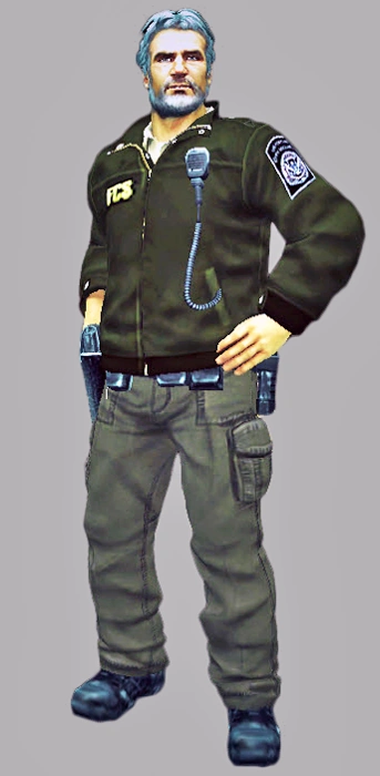 He reappears in the non-canonical Dead Rising 2: Off the Record with the same role as security officer of the shelter, though he is not the perpetrator behind the outbreak in Fortune City and ends up being shot and killed by Stacey Forsythe.