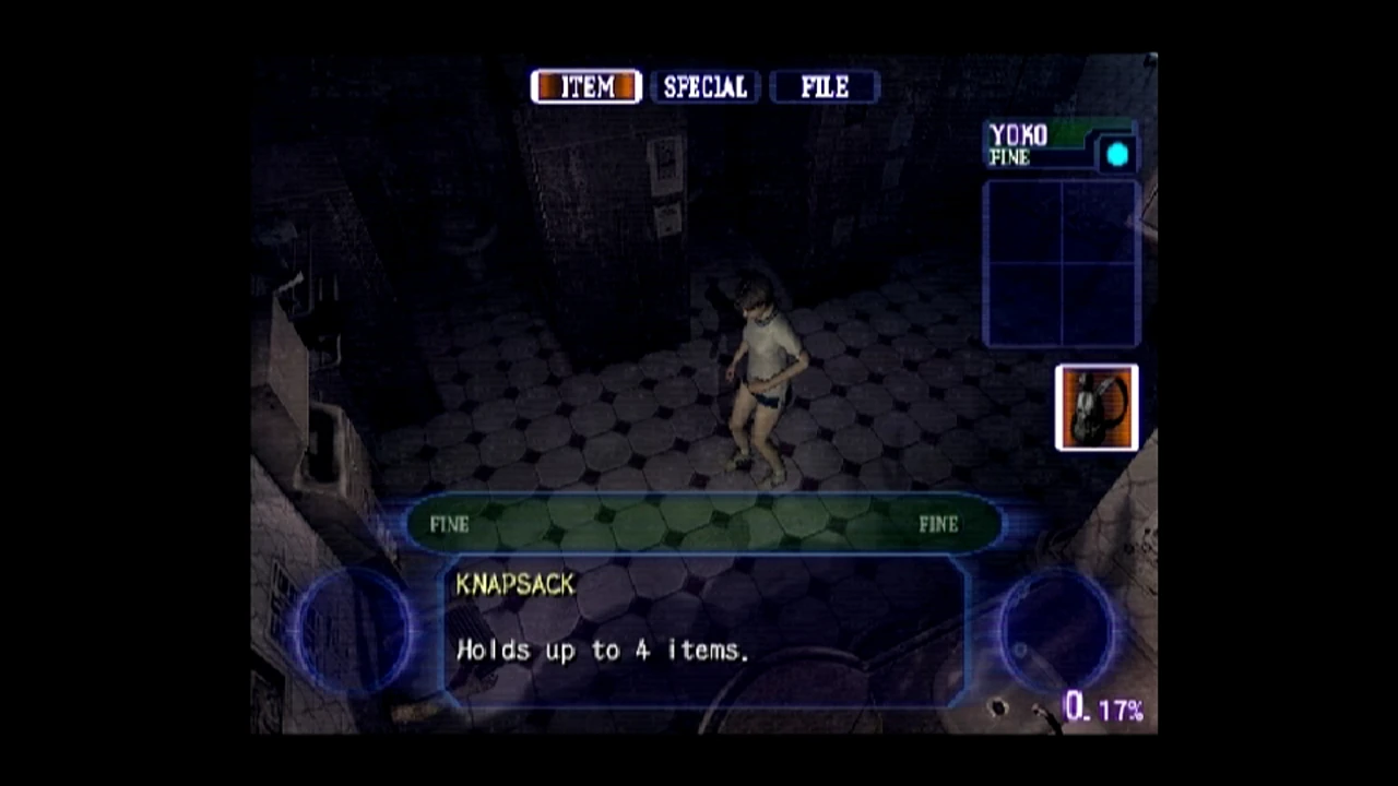 Knapsack - (Outbreak and Outbreak: File # 2) - In addition to the usual four items, Yoko can carry another four items in her Knapsack. Items in the Knapsack, however, cannot be used until switched back into the main inventory.