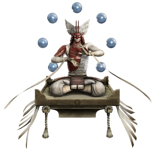 A friend and ally to Mitsunari Ishida, Yoshitsugu is completely wrapped in bandages to portray a trait in which he is historically famous for, his leprosy. His design also reflects his dark personality, wanting the world to share the same pain he has suffered. His armor has a skeletal appearance to it, giving him an even more sinister appeal.